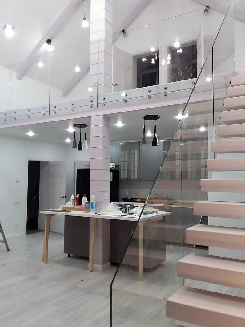 Используем закаленное стекло. По Вашему желанию возможна триплексация стекла для дополнительной прочности и безопасности изделия. Варианты исполнения: точечное крепление, стойки с боковым креплением, стойки с нижним креплением, крепление с использованием профиля.